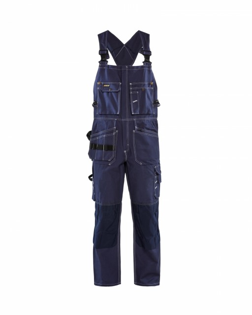 Løsthengende brystlommer med trykknapper og sikkerhetsbånd, en med klaff og en med pennelomme, patentknapper og knivholder